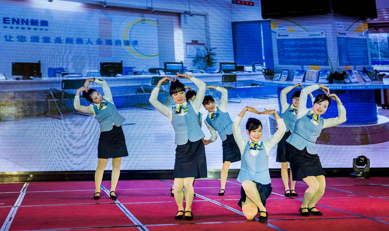 在播放了领导向全员的新春拜年视频后,精彩纷呈的文艺汇演开始了。文艺节目采用歌舞、配乐诗朗诵、情景剧、服务礼仪操等多种形式,幸运抽奖、趣味游戏穿插在各个节目中。每个节目均以公司员工的“真人真事”为原型来展现身边发生的故事,把曾经的困惑、苦楚、欢乐、幸福,通过节目表演形式来告诉亲人和同事,弘扬企业文化,传递社会正能量。其中情景剧《新奥时代》以获得新奥能源卓越运营项目一等奖的渌江大桥工程施工创新为原型,以情景剧的形式再现了工程建设情景,展现了建设者们不畏难题、开拓创新的精神,深深感染了在场人员,获得了文艺节目一等奖。情景剧《首波日记》以维修员彭首波在日常工作中所经历的故事为内容,再现了客服人员的服务和团队风采。